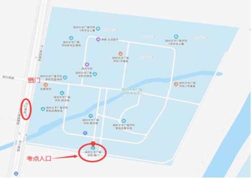 友情提示:請(qǐng)從揚(yáng)州職業(yè)大學(xué)西門進(jìn)入,由于西門離考場有一段距離,請(qǐng)考生盡量提早到達(dá)考場所在教學(xué)樓,可乘坐101路公交車。