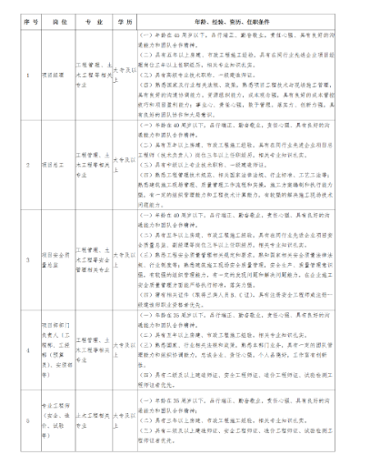 項(xiàng)目經(jīng)理2名,項(xiàng)目總工程師2名,項(xiàng)目安全質(zhì)量總監(jiān)1名,工程部長2名,項(xiàng)目工經(jīng)部長2名,項(xiàng)目物機(jī)部長2名,項(xiàng)目安質(zhì)部長1名。