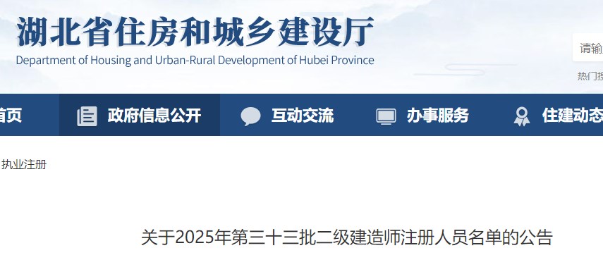 湖北省住房和城鄉(xiāng)建設(shè)廳發(fā)布:關(guān)于2025年第三十三批二級(jí)建造師注冊人員名單的公告,具體內(nèi)容如下: