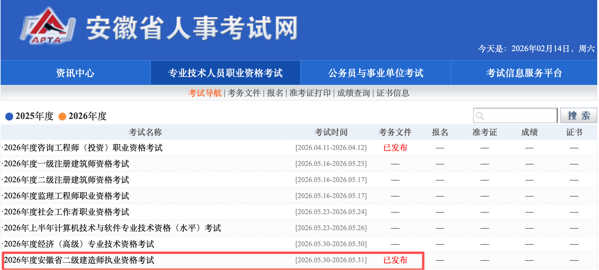 安徽發(fā)布2026年度安徽省二級建造師執(zhí)業(yè)資格考試:5月30日、31日