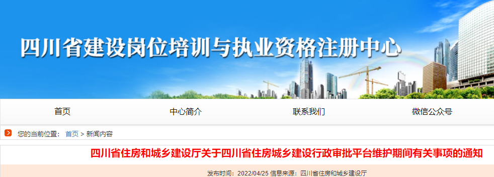 關(guān)于四川省住房城鄉(xiāng)建設(shè)行政審批平臺維護期間有關(guān)事項的通知