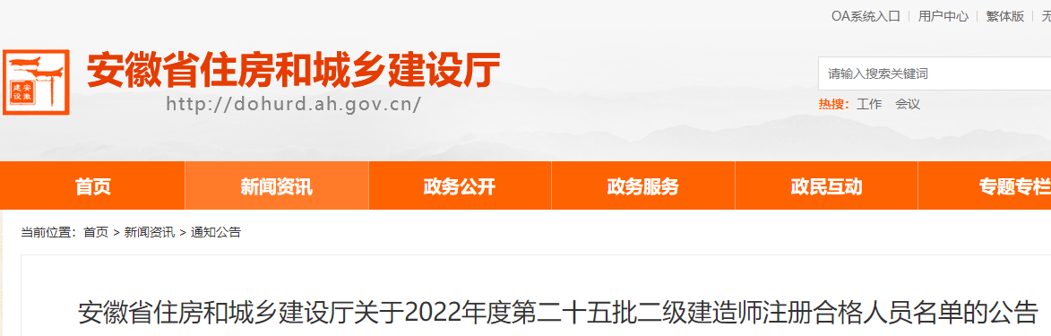 安徽2022年度第二十五批二級(jí)建造師注冊(cè)合格人員名單的公告