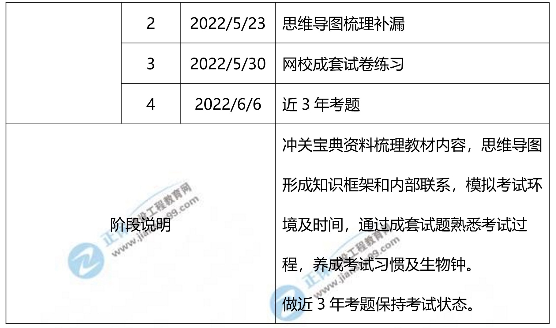 3、以上時(shí)間進(jìn)度,包含了同學(xué)們預(yù)習(xí)教材,正式聽課,做練習(xí)中心的時(shí)間。對剛開始二級建造師考試的同學(xué)來說,公共科目難度較低,可以采用題海戰(zhàn)術(shù),但是不會(huì)的內(nèi)容務(wù)必返回基礎(chǔ)課程和教材去學(xué)習(xí);實(shí)務(wù)課案例難度較大,需要學(xué)員有一定的背誦知識(shí)和系統(tǒng)理解,建設(shè)工程教育網(wǎng)特研制各科目思維導(dǎo)圖供學(xué)員梳理知識(shí)體系。同時(shí)建議同學(xué)們要根據(jù)自己的工作,學(xué)習(xí)情況合理安排好時(shí)間和進(jìn)度,這樣學(xué)習(xí)效果會(huì)更好。