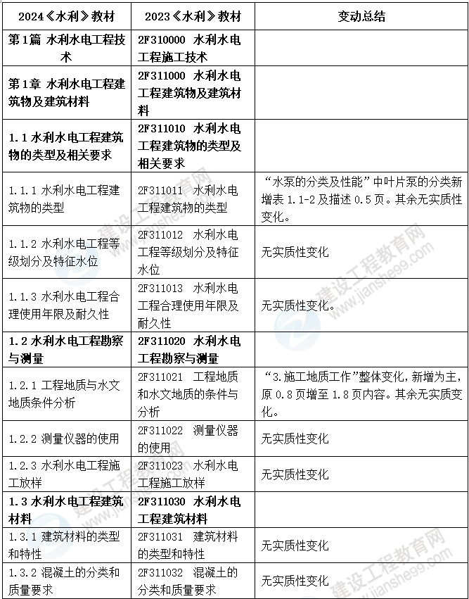 2024年二級建造師水利實務(wù)教材變動情況表預(yù)覽