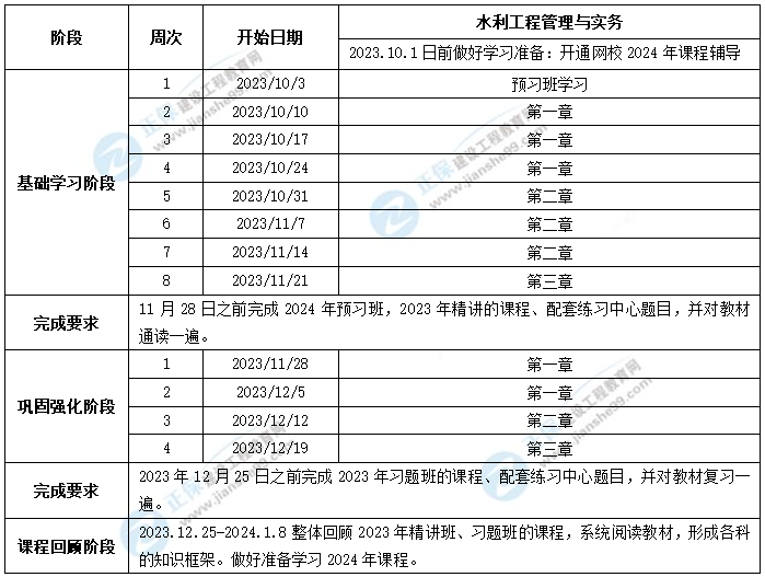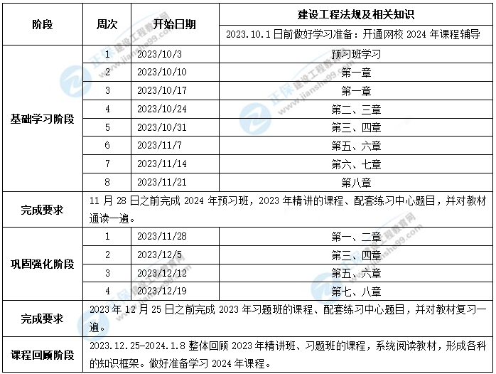 1、整體進(jìn)度說(shuō)明:本計(jì)劃表從2024年9月2日開始執(zhí)行,計(jì)劃于2025年1月5日結(jié)束,共計(jì)18周;其中:基礎(chǔ)學(xué)習(xí)階段安排8周,鞏固強(qiáng)化階段安排8周,課程整體回顧階段安排2周。學(xué)員可根據(jù)本表的提示,結(jié)合自己的工作,學(xué)習(xí)情況進(jìn)行細(xì)化,并按網(wǎng)校要求完成聽(tīng)課、做題的學(xué)習(xí)任務(wù),基本可滿足考試需要。