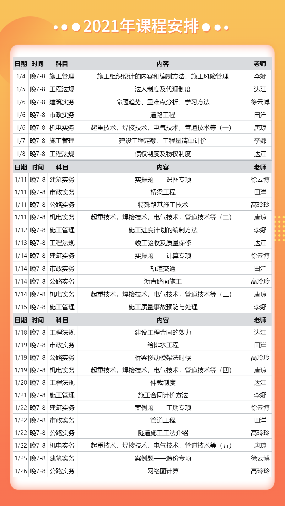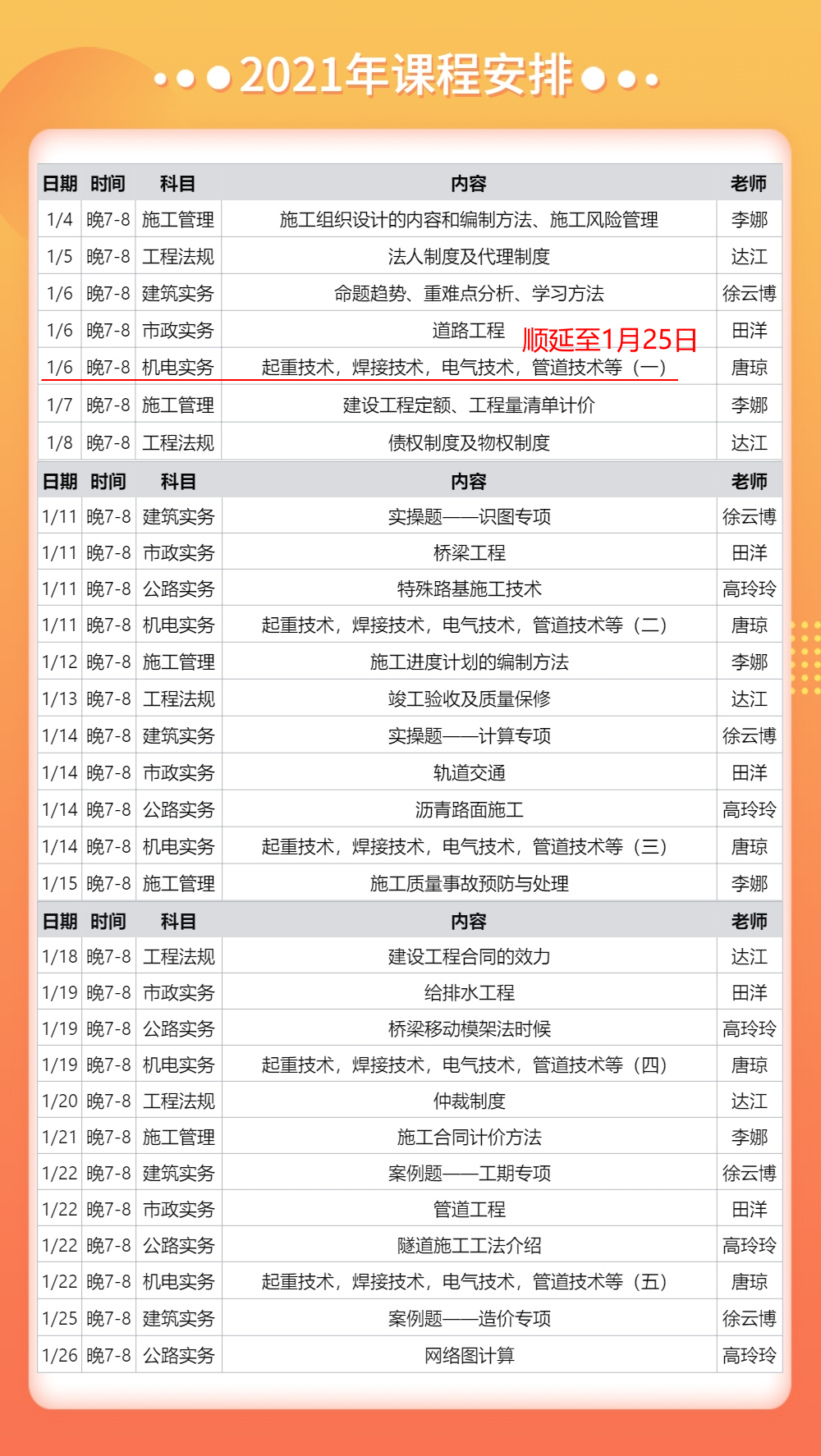 1月4日-1月26日19:00-20:00,網(wǎng)校老師與您有約!具體課程安排如下: