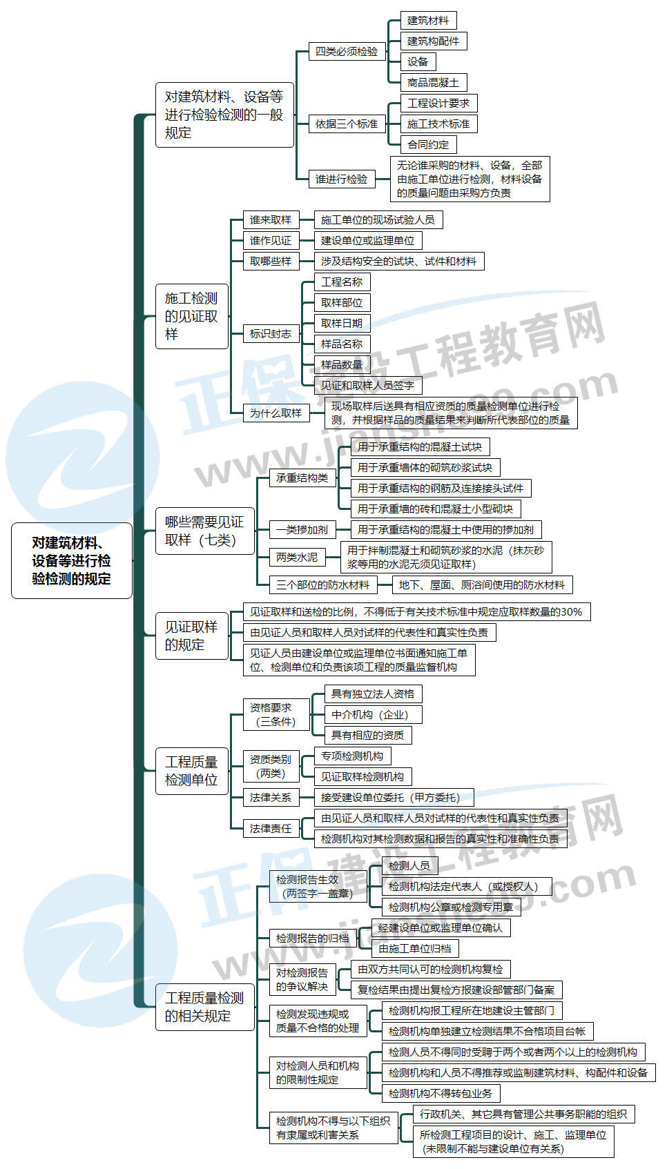 2022二建法規(guī):對建筑材料、設備等進行檢驗檢測的規(guī)定(思維導圖)