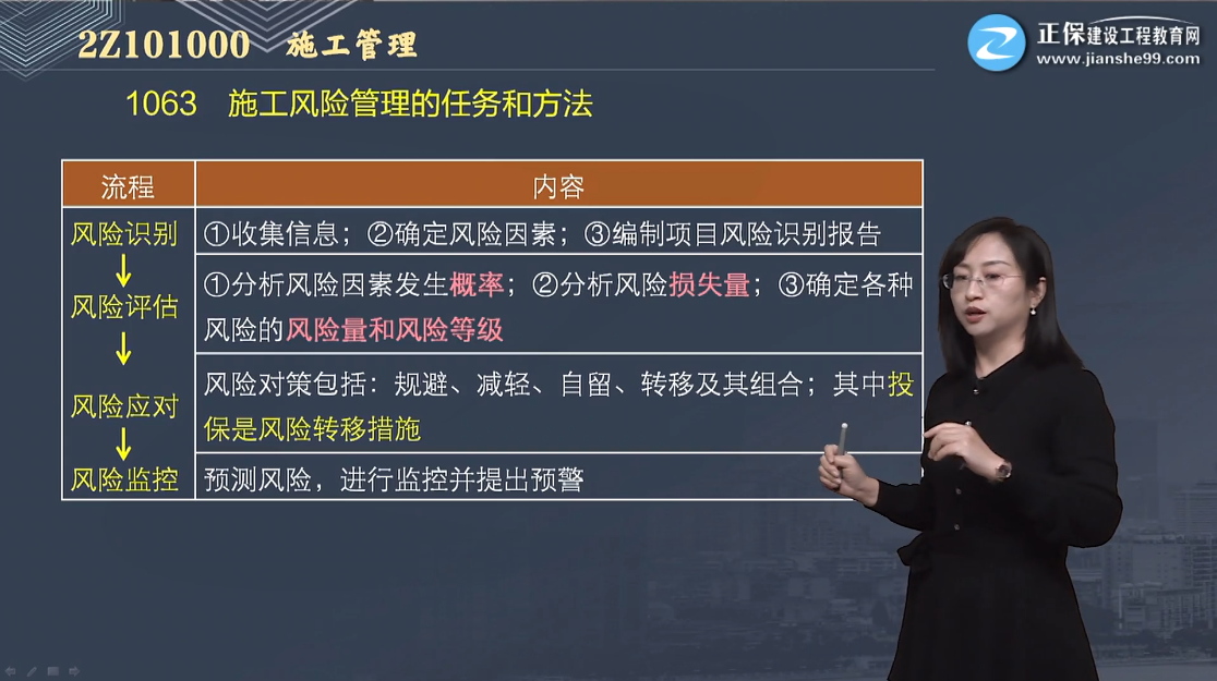 風險識別 ①收集信息;②確定風險因素;③編制項目風險識別報告