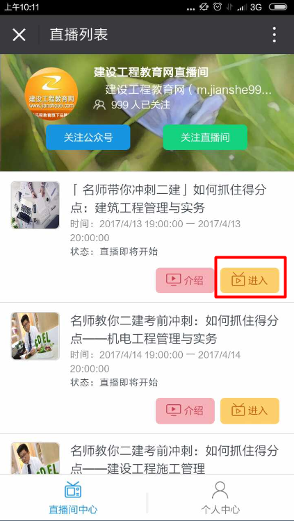 步驟2: 識別后,進入建設(shè)工程教育網(wǎng)直播間。