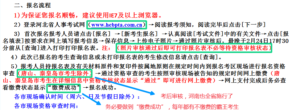 【報名流程】即使是同一個省份,各個地級市的報名流程也不同(此現(xiàn)象南方省份更為普遍,以江蘇最為顯著)。所以報名一定要認真閱讀流程。