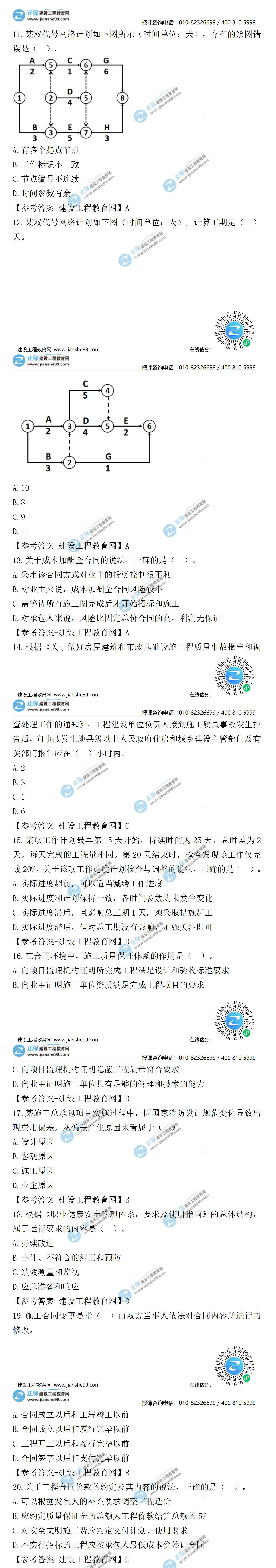 2021年二級(jí)建造師施工管理試題及答案11-20(29日)