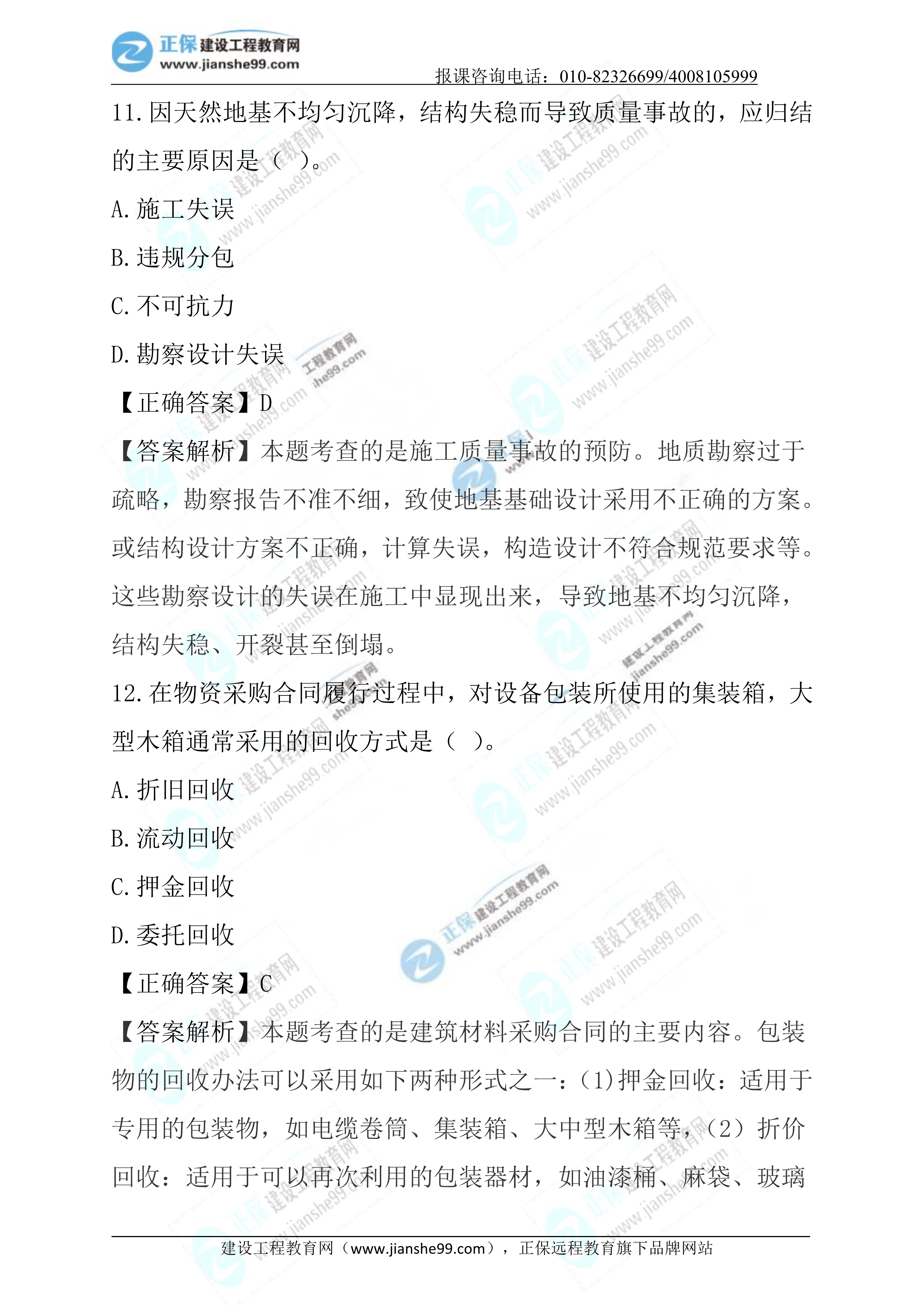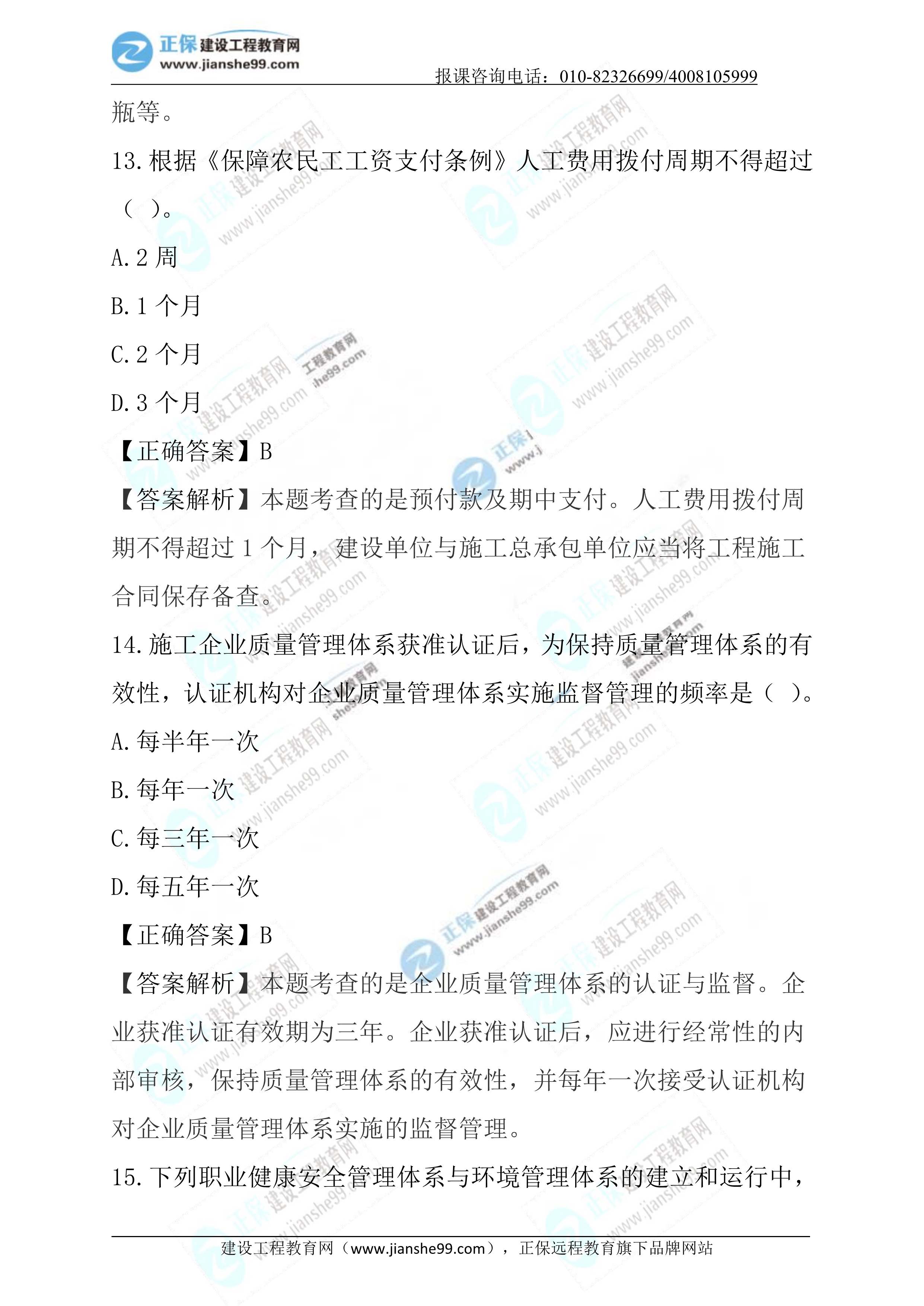2023年二級建造師施工管理真題及答案11-20
