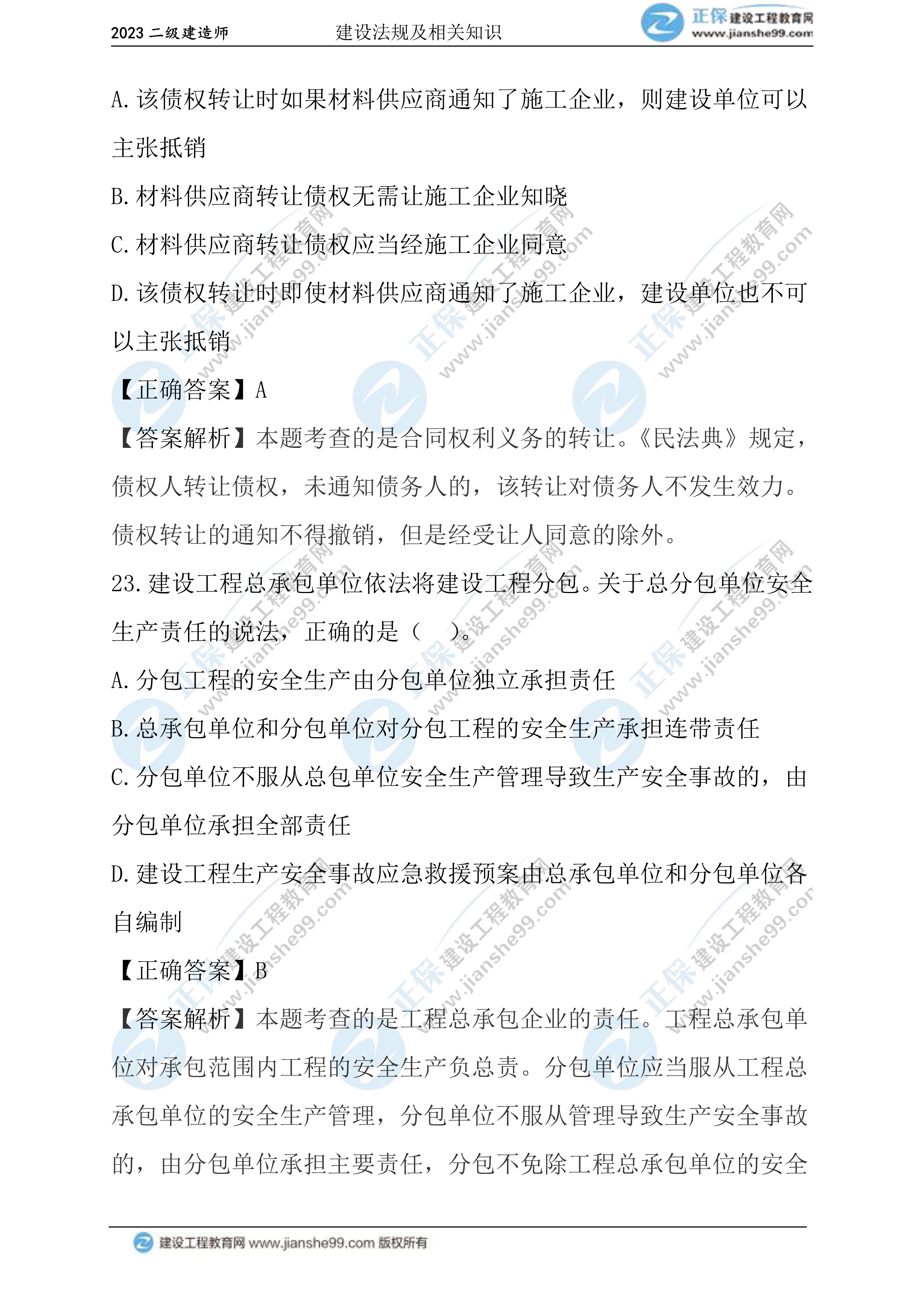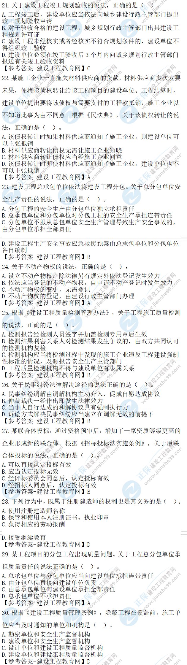 2023年二級(jí)建造師工程法規(guī)真題及答案21-30