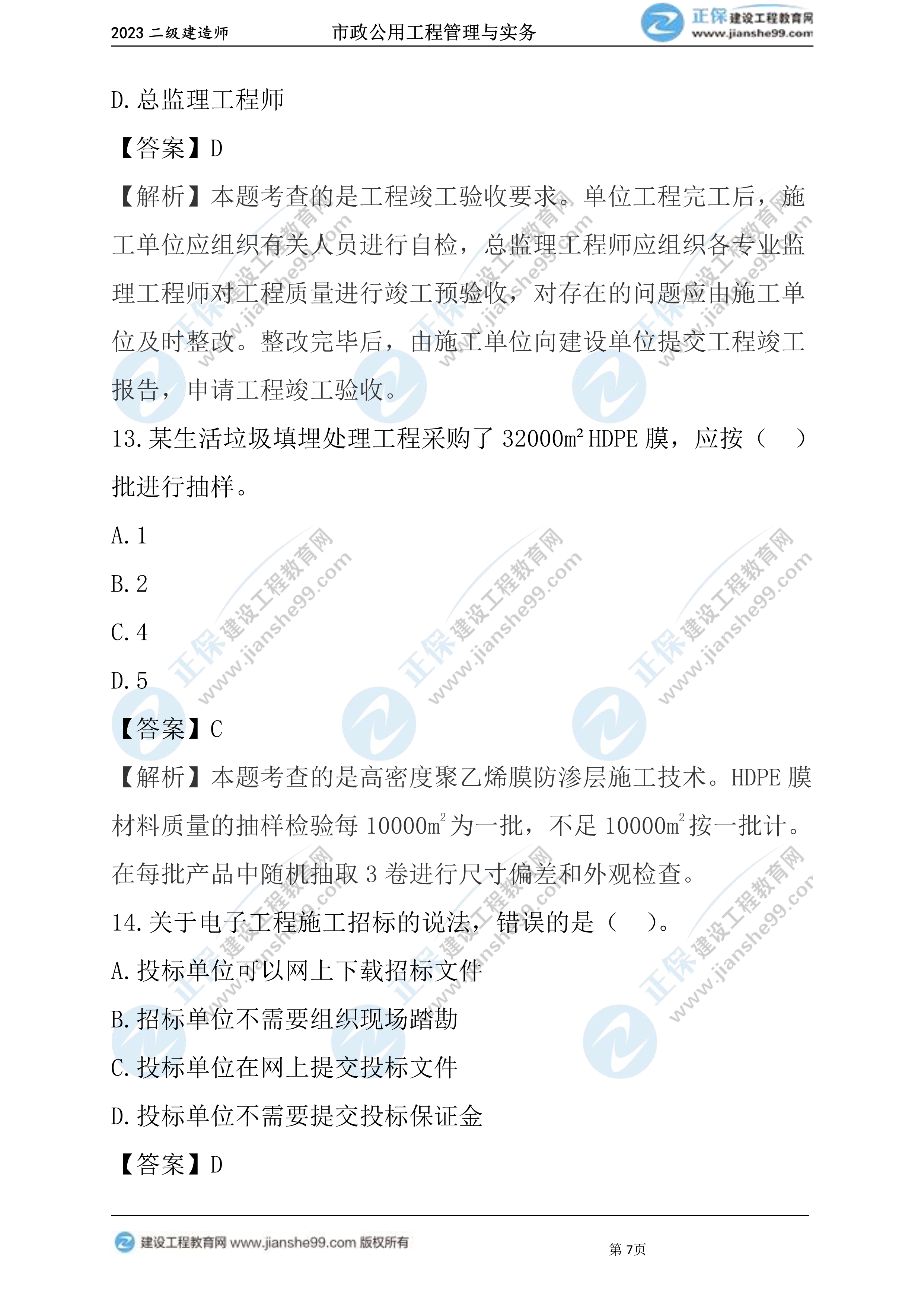推薦:2023二級建造師市政實務真題及答案解析匯總