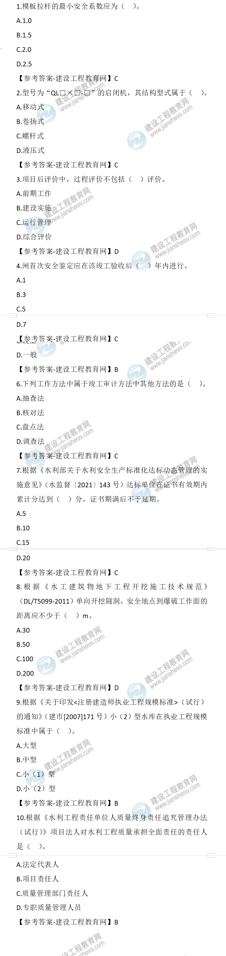 2023年二級建造師考試于6月3日、4日舉行,考試過后,廣大考生最關(guān)心的問題莫過于2023年二級建造師水利實務(wù)真題及答案,建設(shè)工程教育網(wǎng)考后將會根據(jù)考生反饋,及時匯總2023年二級建造師水利工程管理與實務(wù)真題及答案分享給大家。以下為2023年二級建造師水利水電工程管理與實務(wù)1-10題真題及答案,希望能為廣大二建考生朋友帶來幫助。
