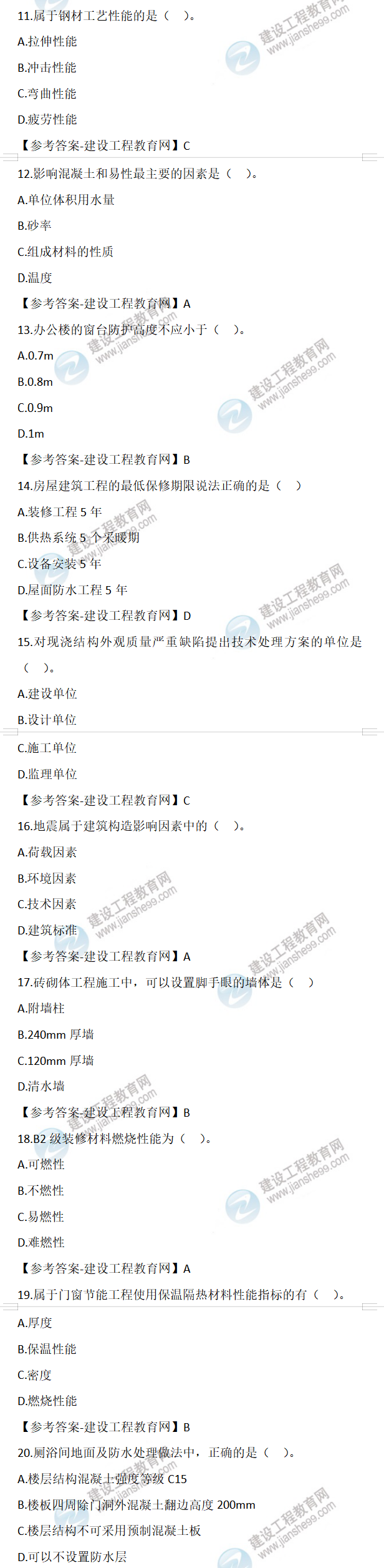2022年二級建造師建筑工程實務試題及答案第11-20題(6月11日)