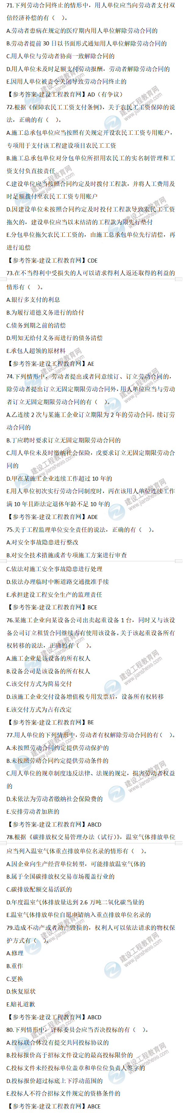 2022年二級(jí)建造師工程法規(guī)試題及答案71-80(11日2天3科)