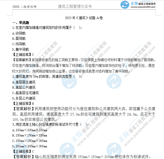 2025年二級(jí)建造師建筑實(shí)務(wù)真題及答案解析