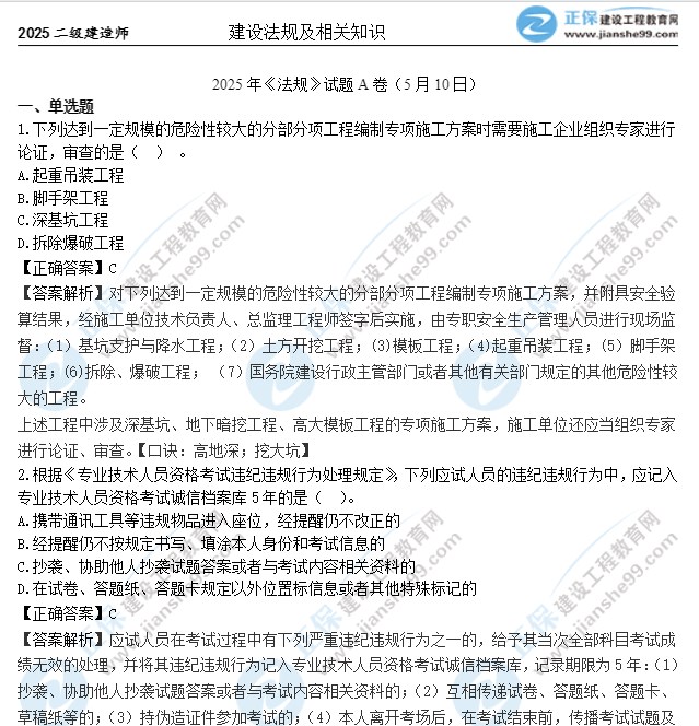 2025年二級(jí)建造師工程法規(guī)真題及答案解析(5.10日)