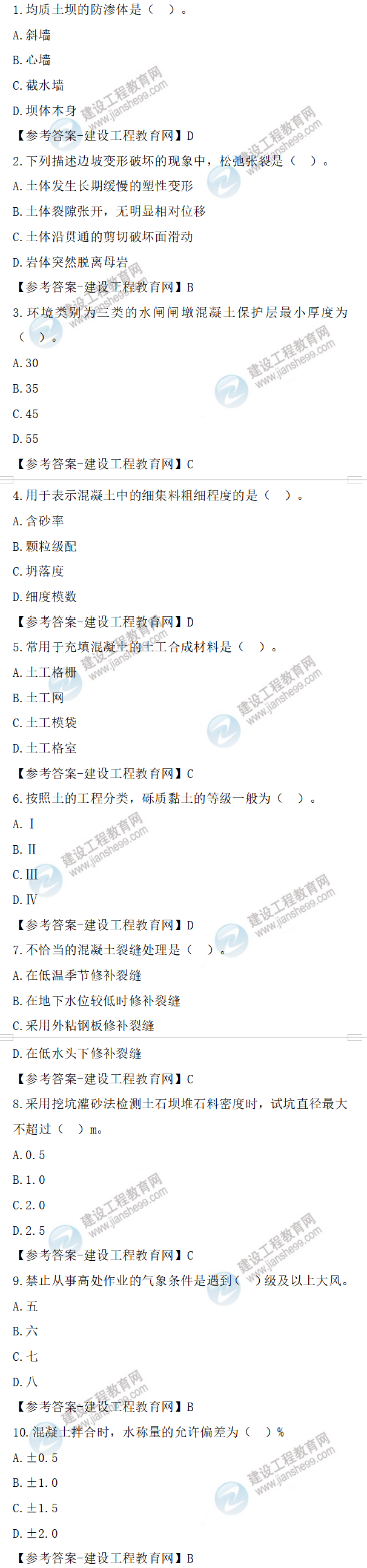 2022年二級建造師水利實務(wù)試題及答案第1-10題(12日2天3科)