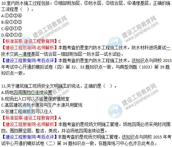 2015年二級(jí)建造師《建筑工程管理與實(shí)務(wù)》答案及解析由老師整理而成,部分網(wǎng)站未經(jīng)許可擅自轉(zhuǎn)載、抄襲,造成內(nèi)容有所缺失或錯(cuò)誤,請(qǐng)大家以建設(shè)工程教育網(wǎng)發(fā)布為準(zhǔn)!二建試題答案