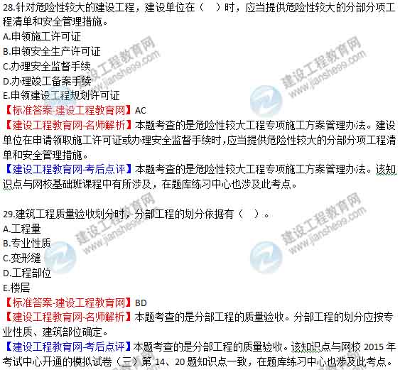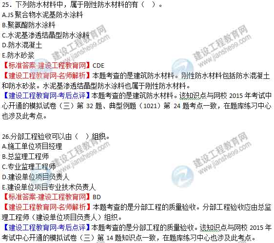 2015年二級建造師《建筑工程管理與實務(wù)》答案及解析由老師整理而成,部分網(wǎng)站未經(jīng)許可擅自轉(zhuǎn)載、抄襲,造成內(nèi)容有所缺失或錯誤,請大家以建設(shè)工程教育網(wǎng)發(fā)布為準(zhǔn)!2015二建試題答案解析