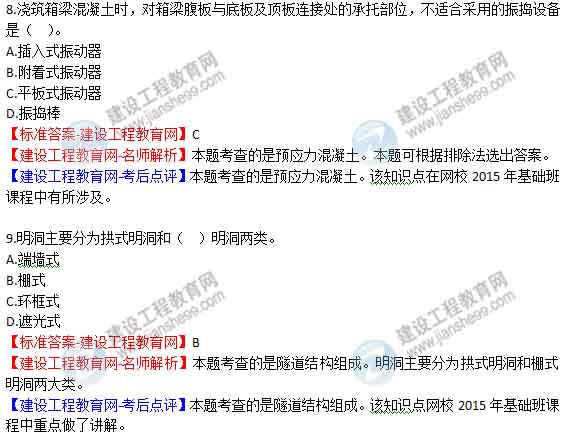 2015年二級(jí)建造師《公路工程管理與實(shí)務(wù)》答案及解析由老師整理而成,部分網(wǎng)站未經(jīng)許可擅自轉(zhuǎn)載、抄襲,造成內(nèi)容有所缺失或錯(cuò)誤,請(qǐng)大家以建設(shè)工程教育網(wǎng)發(fā)布為準(zhǔn)!二建試題答案