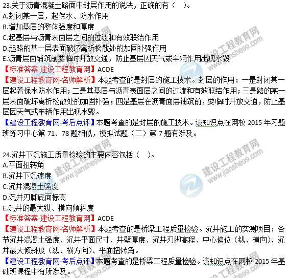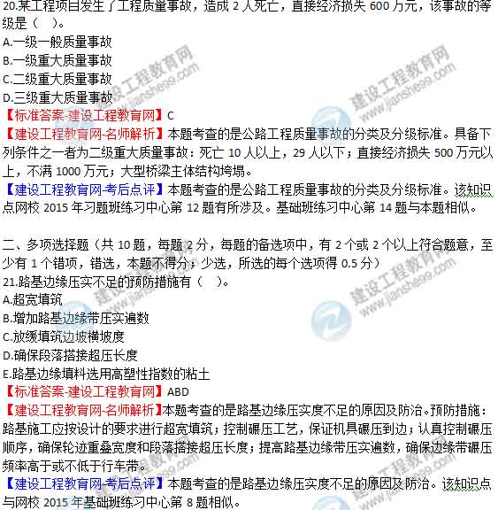 2015年二級(jí)建造師《公路工程管理與實(shí)務(wù)》答案及解析由老師整理而成,部分網(wǎng)站未經(jīng)許可擅自轉(zhuǎn)載、抄襲,造成內(nèi)容有所缺失或錯(cuò)誤,請(qǐng)大家以建設(shè)工程教育網(wǎng)發(fā)布為準(zhǔn)!二建試題答案