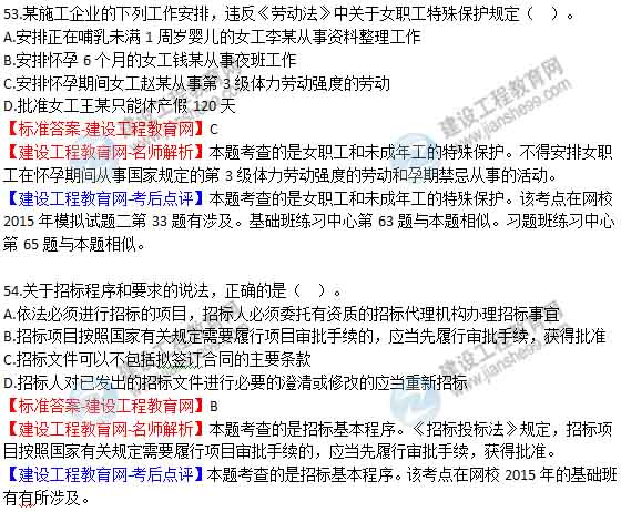 【老師解析】2015年二建法規(guī)及相關(guān)知識(shí)試題及答案(49-54題)
