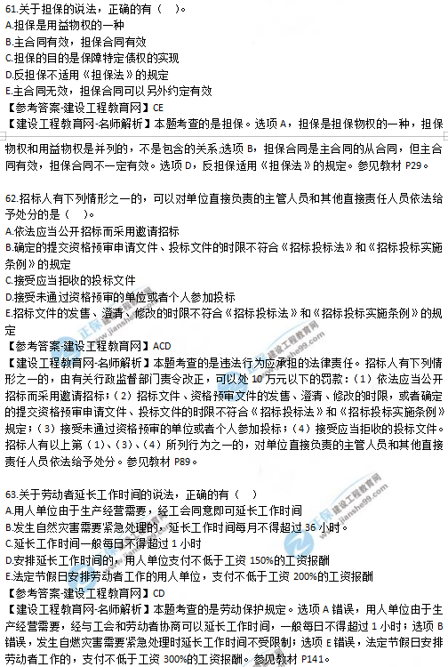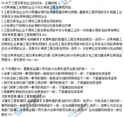 2019年二級建造師法規(guī)考試真題及答案解析61-65