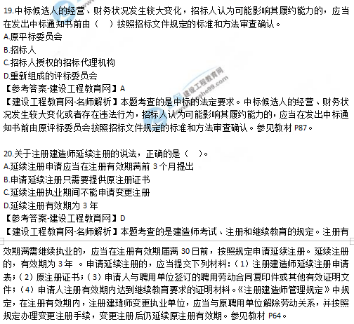 2019年二級(jí)建造師法規(guī)考試真題及答案解析16-20