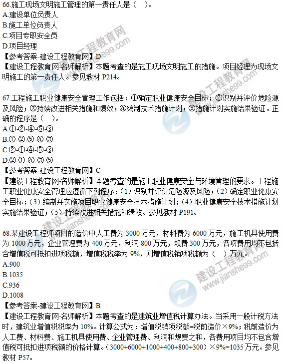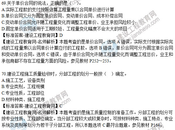 2019年二級(jí)建造師《建設(shè)工程施工管理》試題及答案解析66-70