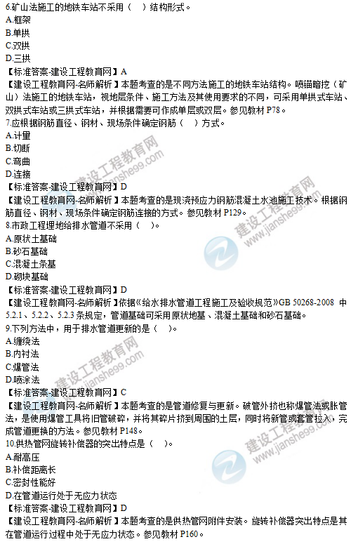 2019年二級(jí)建造師市政實(shí)務(wù)選擇題6-10試題及答案解析
