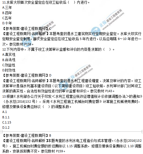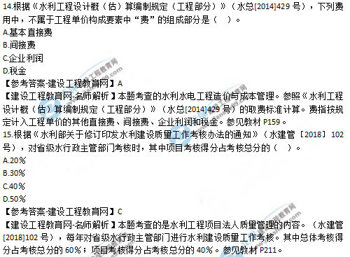 2019年二級建造師水利實務選擇題11-15試題及答案解析