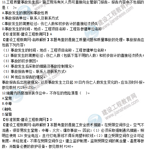 以上就是為大家分享的2019年二級建造師考試《機電工程管理與實務(wù)》試題及答案解析,建設(shè)工程教育網(wǎng)將持續(xù)關(guān)注2020年二級建造師考試的相關(guān)信息。更多2020年二級建造師考試內(nèi)容,盡在建設(shè)工程教育網(wǎng)二級建造師欄目!