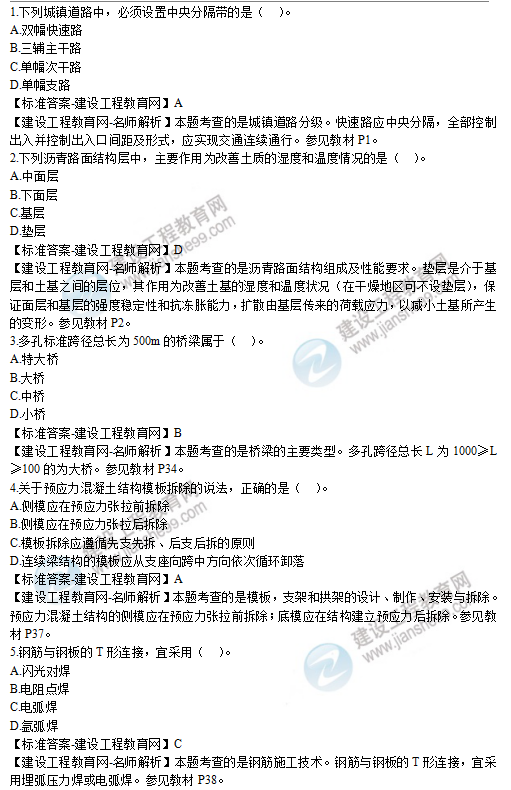 2019年二級建造師市政實(shí)務(wù)選擇題1-5試題及答案解析