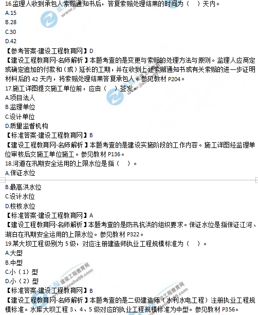 以上就是為大家分享的2019年二級建造師考試《水利水電工程管理與實務》試題及答案解析,建設工程教育網將持續(xù)關注2020年二級建造師考試的相關信息。更多2020年二級建造師考試內容,盡在建設工程教育網二級建造師欄目!
