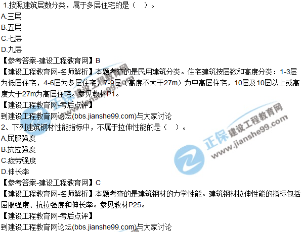 2017年二級建造師《建筑實務(wù)》試題及答案解析(1-10)