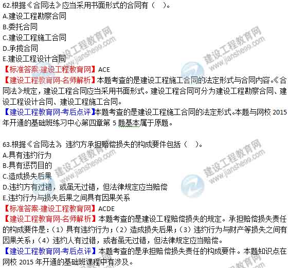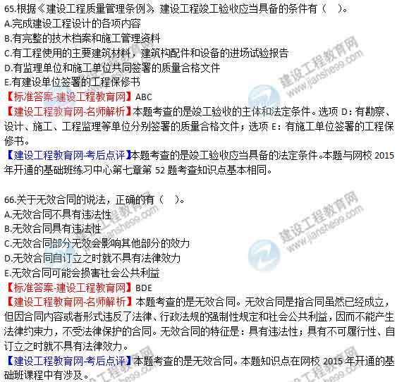 2015年二級建造師《建設(shè)工程法規(guī)及相關(guān)知識》答案及解析由老師整理而成,部分網(wǎng)站未經(jīng)許可擅自轉(zhuǎn)載、抄襲,造成內(nèi)容有所缺失或錯(cuò)誤,請大家以建設(shè)工程教育網(wǎng)發(fā)布為準(zhǔn)!二建試題答案