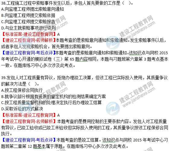 【老師解析】2015年二級建造師施工管理試題及答案(37-42題)