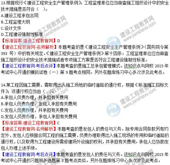 【老師解析】2015年二建施工管理試題及答案(13-18題)