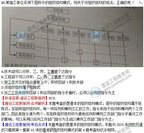 【建設(shè)工程教育網(wǎng)-考后點評】本題考查的是項目經(jīng)理的權(quán)限。本題與2015年網(wǎng)校開通的習(xí)題班第一章第02講的施工方項目經(jīng)理的權(quán)限的第1題考查知識點相同。