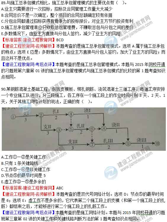 【老師解析】2015年二級建造師施工管理試題及答案(85-90題)