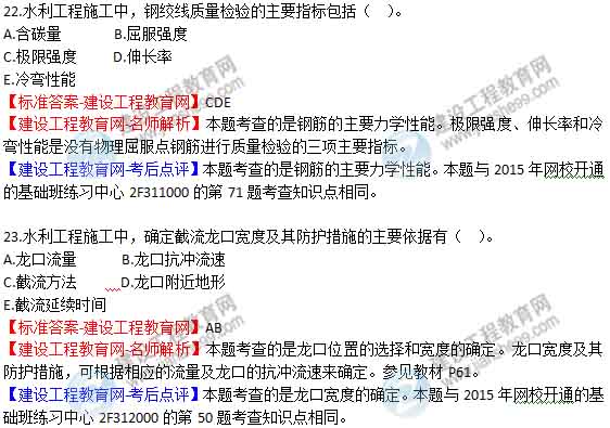 2015年二級建造師《水利水電工程管理與實務(wù)》答案及解析由老師整理而成,部分網(wǎng)站未經(jīng)許可擅自轉(zhuǎn)載、抄襲,造成內(nèi)容有所缺失或錯誤,請大家以建設(shè)工程教育網(wǎng)發(fā)布為準(zhǔn)!