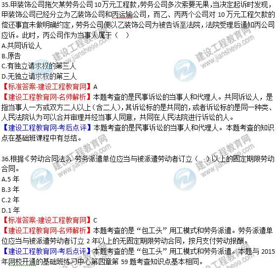 【老師解析】2015年二級(jí)建造師法規(guī)及相關(guān)知識(shí)試題及答案(31-36題)