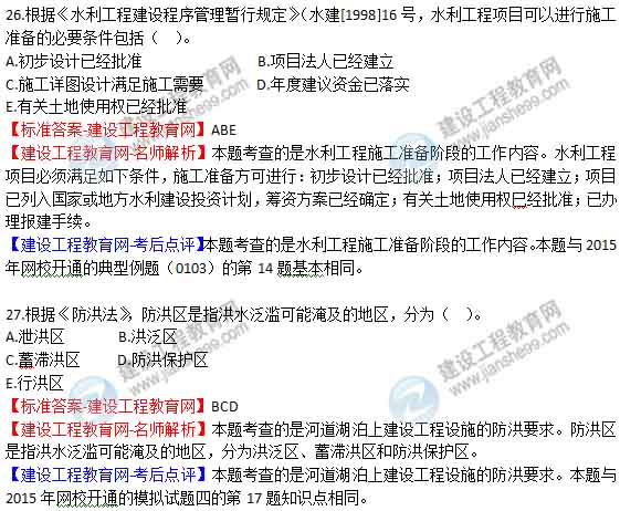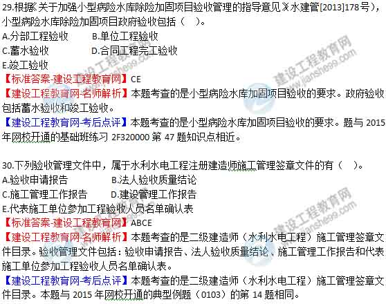 2015年二級建造師《水利水電工程管理與實(shí)務(wù)》答案及解析由老師整理而成,部分網(wǎng)站未經(jīng)許可擅自轉(zhuǎn)載、抄襲,造成內(nèi)容有所缺失或錯誤,請大家以建設(shè)工程教育網(wǎng)發(fā)布為準(zhǔn)!