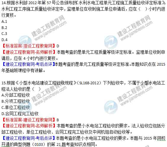 2015年二級(jí)建造師《水利水電工程管理與實(shí)務(wù)》答案及解析由老師整理而成,部分網(wǎng)站未經(jīng)許可擅自轉(zhuǎn)載、抄襲,造成內(nèi)容有所缺失或錯(cuò)誤,請(qǐng)大家以建設(shè)工程教育網(wǎng)發(fā)布為準(zhǔn)!