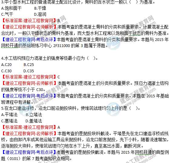 【老師解析】2015年二級(jí)建造師水利水電實(shí)務(wù)試題及答案(2-6題)