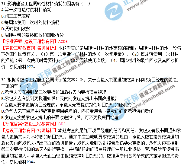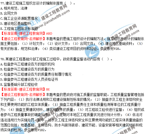 2018年二建《建設(shè)工程施工管理》試題及答案解析(71-80)