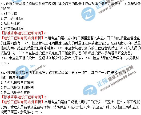 2018年二建《建設(shè)工程施工管理》試題及答案解析(61-70)